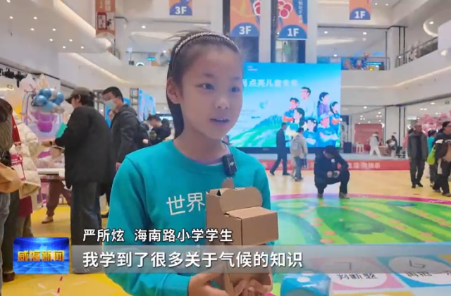 海南路小学学生严所炫表示,学到了很多关于气候的知识,比如垃圾分类、碳排放,非常喜欢。