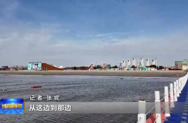 记者张妮:从这边到那边,这一片全部都是金鼎·风从海上来驿站,我觉得这儿真的把“海韵”拿捏得死死的!大风车、海上秋千,还有我现在所在的漂浮栈道等项目,不管是散步赏景,还是拍照打卡,都是非常出片。站在这里远眺,大海是格外得辽阔,所有烦恼都能被海风带走。