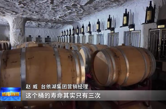 台依湖集团营销经理赵威:这个地方也可以称为乳山的记忆,最早的时候,在乳山的下初镇是有咱自己的酿酒公司。金酿白兰地、雷司令,其实这些老牌子的葡萄酒都是咱们乳山这个地方生产出来的。现在12款葡萄酒已分别斩获国内外的107项大奖了。除了有这样的一个悠久历史之外,咱们的酒窖也是非常精彩的。