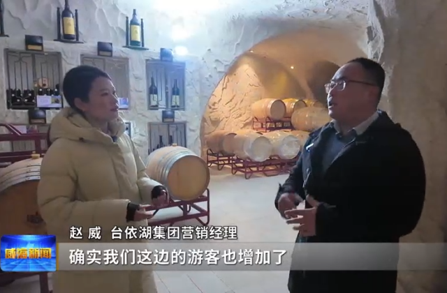 台依湖集团营销经理赵威:确实我们这边的游客也增加了。因为台依湖酒庄作为一个挂牌的AAA级景区,咱们正常的门票价格是40元一人,持高铁票的客人来这边可以立减10元,同时在酒庄购买葡萄酒也是立减100元。