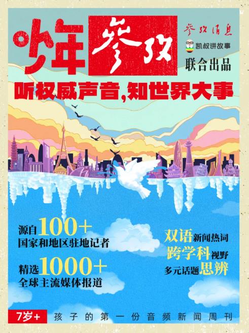 《参考消息》享有“万报之报”之誉,是广大读者了解世界的窗口。《参考消息》拥有来自全球100多个国家和地区的1000多家主流媒体信源网络,兼具权威的新闻、专业的内容与全球的视野。同时,凯叔讲故事团队专业的儿童内容制作能力,将或艰深、或宏大的国际新闻转化为孩子感兴趣、听得懂的音频内容,使《少年参考》真正实现让孩子们“听权威声音,知世界大事”。