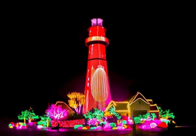 市人民广场彩灯布设亮点纷呈,成为本次亮化的核心看点。广场中央将打造巨型中国结灯光装置,通过绯红丝线经纬交错,既勾勒出吉祥喜庆的新春氛围,更象征着各民族情谊紧密相连。市人民广场跌水池区域的光艺设施设计独具匠心,采用阵列的圆环向北依次延伸,形成极具震撼力的视觉透视效果。广场草坪上,将摆放一幅幅展示威海城市建设成果、特色人文景观的灯绘作品。灯绘作品错落摆放,创作中借鉴威海剪纸简洁流畅的构图手法与鲜明的寓意表达,同时融入3D打印、AI图像处理等新型技术,让灯绘细节更细腻、画面更生动,尽显威海城市魅力。