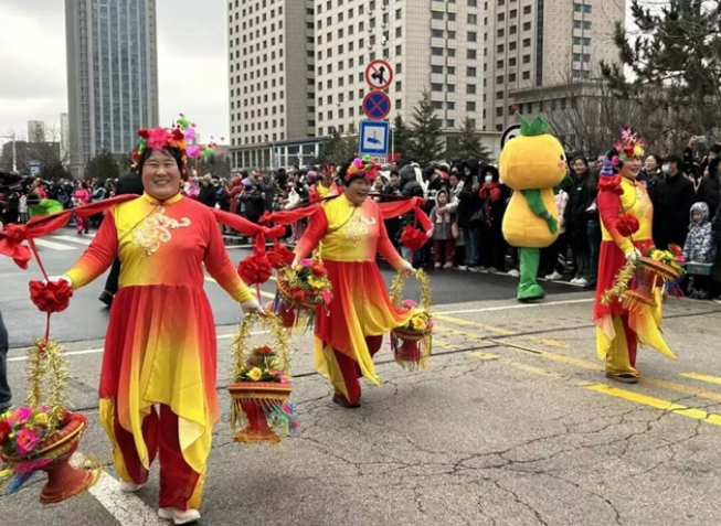文登区2026年正月活报表演于上午9时30分开始,17个方阵,约1300人参与演出。