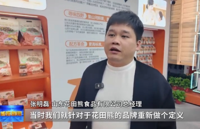山东花田熊食品有限公司总经理张明磊说,其实早在2023年的时候,当时他们就针对于花田熊的品牌重新做个定义,本身他们就是做海苔的,后来定义什么,从现在消费者场景定义是“孩子的餐桌”,传统食品会定义“我是做什么品类的”,但是我们是做场景的。