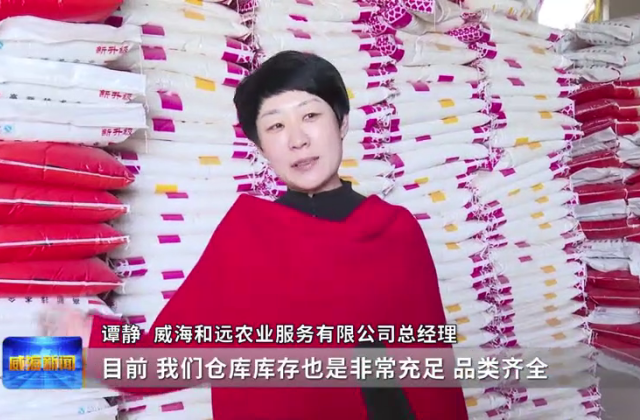 威海和远农业服务有限公司总经理谭静说,目前,仓库库存也是非常充足、品类齐全,在产品质量这一块,也是严格把控,确保每一批货都能够合格、合规,让农户买得放心、用得安心。(全媒体新闻中心记者 周赞文 由小文 张靖婷)
