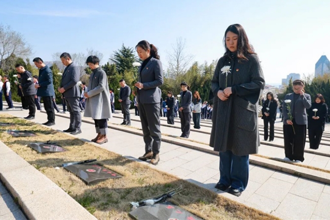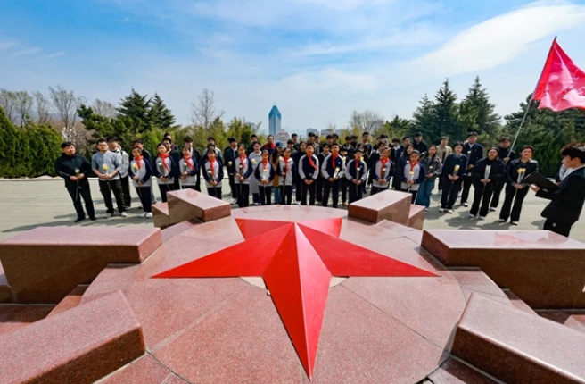清明节之际,威海社会各界人士、大中小学生,来到威海市烈士陵园开展祭扫活动。