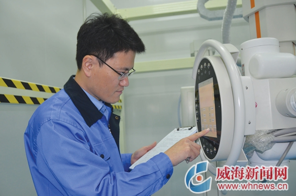 工程师王华兴正在对数字化医用X射线摄影系统进行调试。记者 孙艺嘉 摄