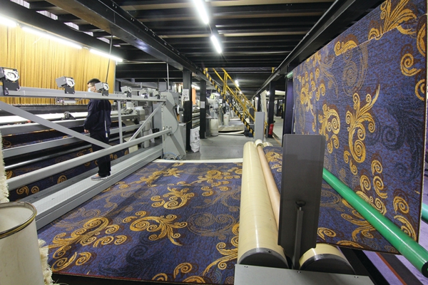 去年,集团引进了世界一流的先进纱线生产设备,并已投入生产,为公司地毯全流程生产丰满了“羽翼”。再辅以已有的高速阿克明斯特地毯织机等先进设备,目前公司的4个智能制造示范车间已经雏形初显。
