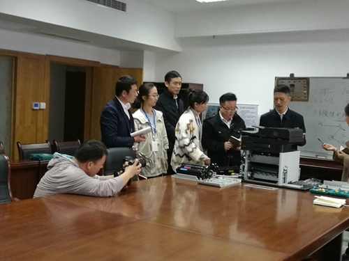 高区招商团队拆解打印机零部件。 高区管委供片