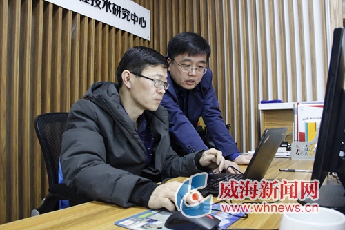2月18日,哈工大(威海)舰船综合电力系统研究所实验室里,一场没有硝烟的“水上演习”正在进行。副所长黄海滨和同事们正在电脑上进行无人船海上航行仿真模拟。