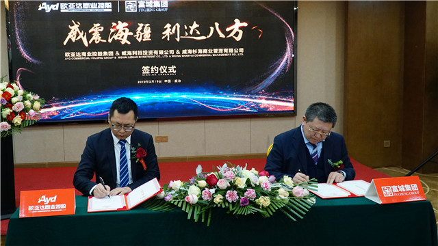在历经4个月的洽谈磋商后,19日上午,欧亚达商业控股集团山东/辽宁区域总经理付情操先生与威海富城集团董事长于富波先生签署合约,正式宣告欧亚达建材家居威海项目成功签约。