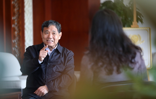 夏春亭(中)在项目施工现场指导施工。 丛波日 摄