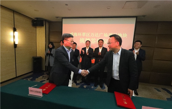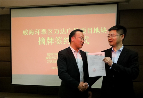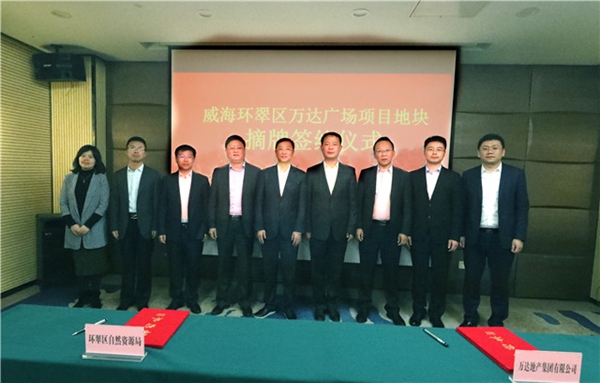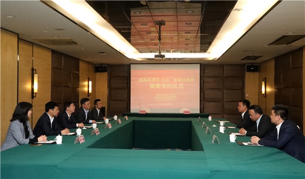 9点30分许,威海环翠区万达广场项目地块摘牌签约仪式举行,双方正式“牵手”。