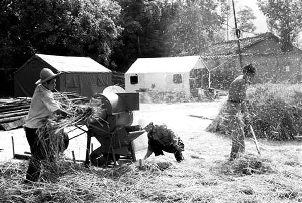 上世纪90年代初小麦脱粒的场景。(资料片)