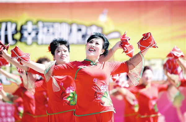 荣成市群众载歌载舞庆祝首届中国农民丰收节。