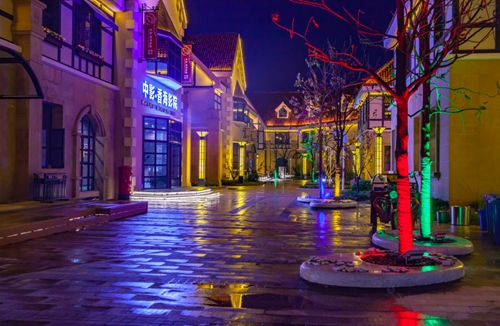 香海花街是按照英伦建筑风格打造的主题商业街区,重点打造餐饮、休闲、文创、影视等特色项目,在夜晚明了的灯光线条与五彩树木装饰灯的交相呼应下,散发出时尚与复古兼具的浪漫气息。