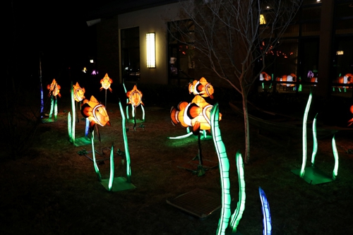 而穿过香海·森林自助餐,位于松林中的室外泡池,却是另一番天地。这里有浓郁海洋主题特色的景观灯,海洋生物造型形态各异,鲨鱼、海马、水母、珍珠贝壳……仿佛是童话里的海底世界,引人入胜。