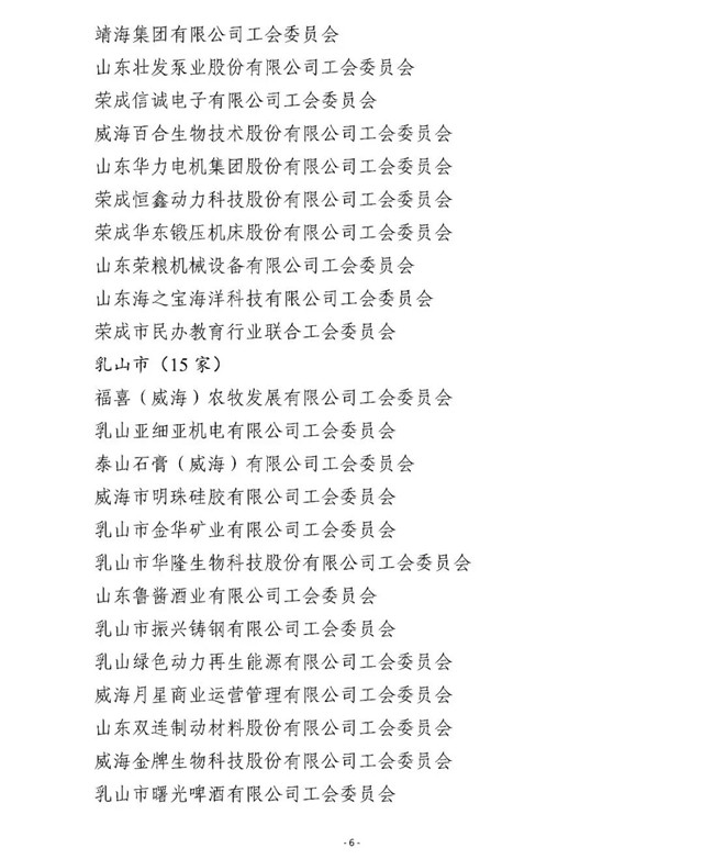命名威海浦源食品有限公司工会委员会等339家单位为星级“活力基层工会”。