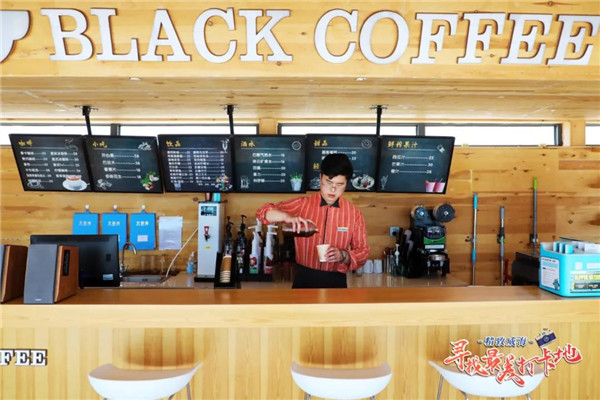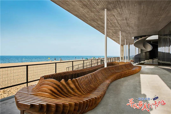 这个狭长的“大盒子”里到底有什么呢?一层设有休闲座椅、卫生淋浴等区域,方便游客游玩歇息。踩着木楼梯拾级而上,一探究竟,二层更是让人惊艳,竟然是全景观海咖啡厅,原来这狭长的设计不是为了别的,而是为了每一个座位都可以看海,超赞!
