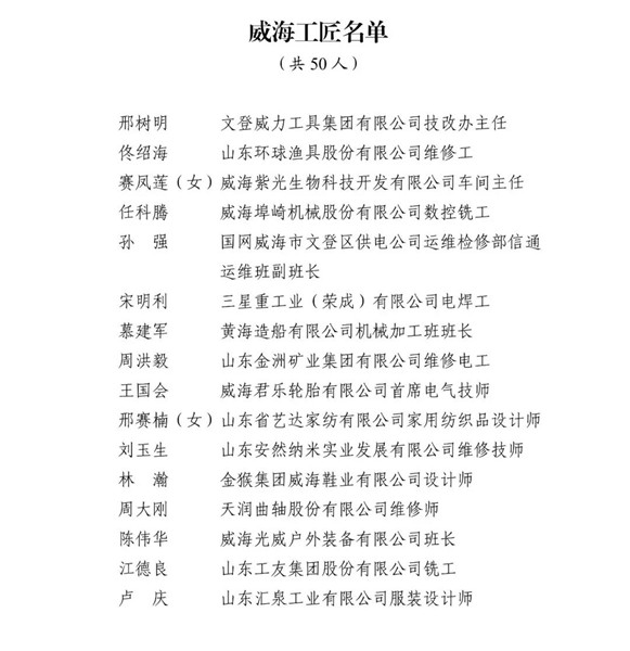 点赞!威海三名职工当选第二届“齐鲁工匠”