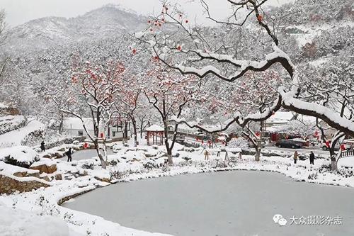 枝头的红柿,在白雪的掩映下,依然露出她俏皮的笑脸,傲立于枝头。