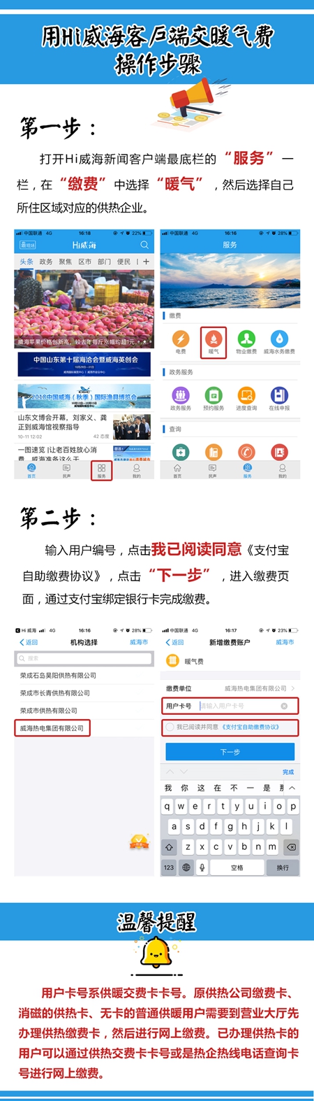 还有一个更好的消息,今年有了Hi威海新闻客户端,我们交暖气费更加方便啦,手指一点,轻松实现!