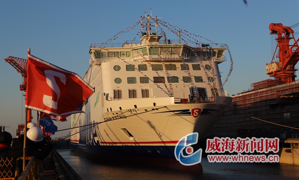 威海首艘高端客滚船下水