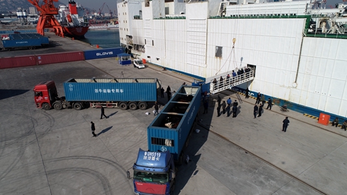 载有2405头澳大利亚波特兰活牛的利比里亚籍“长顺”轮顺利靠泊石岛新港。 杨志礼 摄