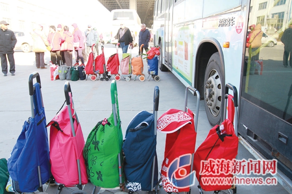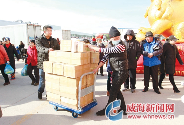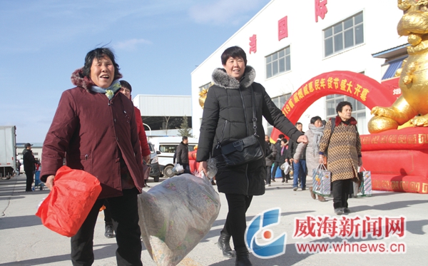 年货节不但方便了威海百姓,也方便了烟台百姓。马先生家住牟平区大窑镇万家山村,他和邻居当天坐免费大巴来到现场。“原来想反正在家没事过来逛逛,没成想,里面的东西这么全,价格还非常实惠。”马先生说。不多时,他便拎了七八个袋子从市场出来,分别装有糖果、海米、虾皮、桔子、海菜等。