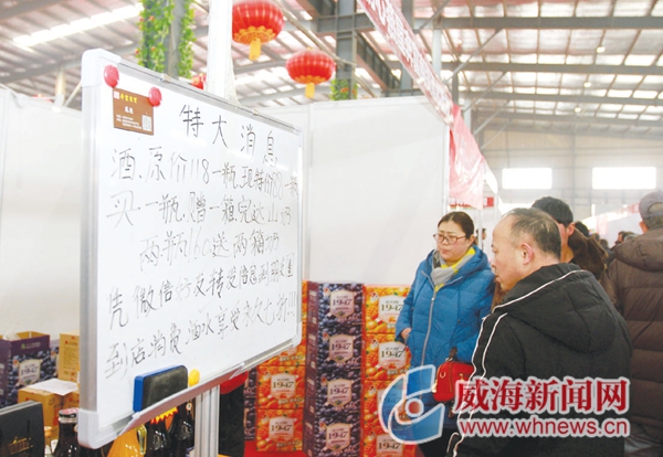 环顾展会现场,威海壹鹏食品的大饽饽礼盒优惠20至40元,古川源酒业全场半价,大多参展商都推出了不同折扣优惠促销。