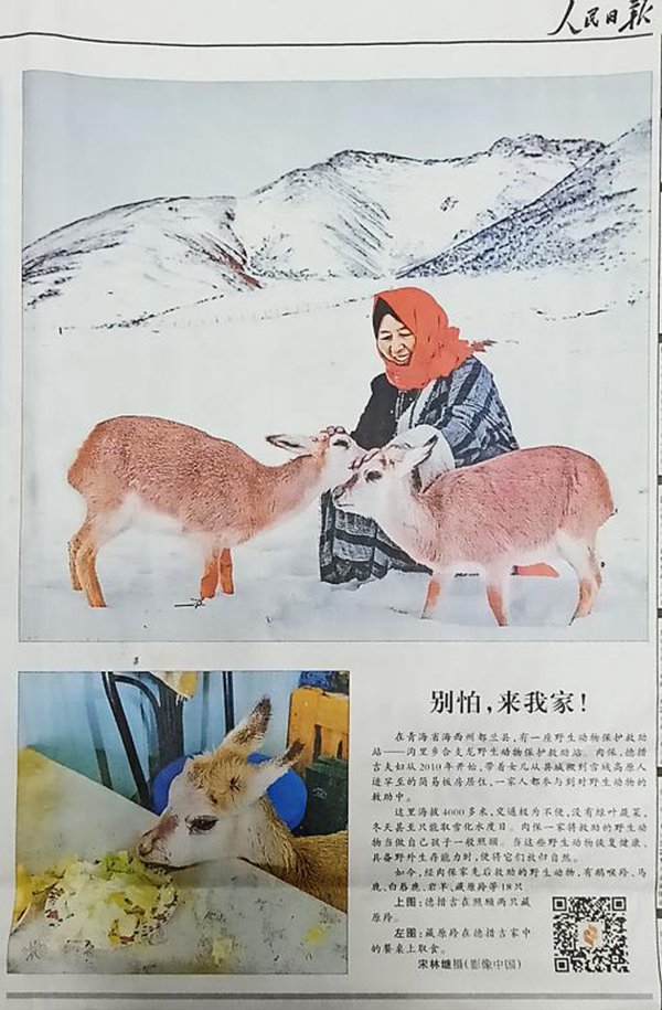 刊登在人民日报2019年1月16日 14 版的宋林继摄影作品《别怕,来我家!》讲述的是在青海省海西州都兰县海拔4000多米高的一座野生动物保护救助站——沟里乡合支龙野生动物保护救助站的故事。