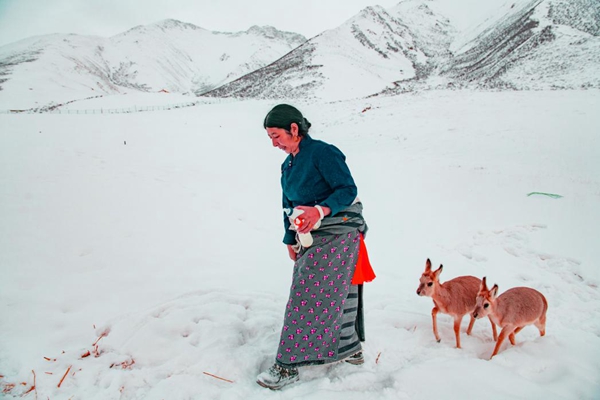 故事的主人公肉保、德措吉夫妇从2010年开始,带着女儿从县城搬到雪域高原人迹罕至的简易板房居住,一家人都参与到对野生动物的救助中。这里交通极为不便,没有绿叶蔬菜,冬天甚至只能取雪化水度日。肉保一家将救助的野生动物当做自己孩子一般照顾。当这些野生动物恢复健康、具备野外生存能力时,便将它们放归自然。如今,经肉保家先后救助的野生动物,有鹅喉羚、马鹿、白唇鹿、岩羊、藏原羚等18只。