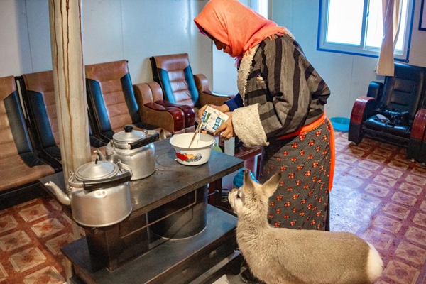 德措吉在家中为藏原羚拌食。 宋林继摄