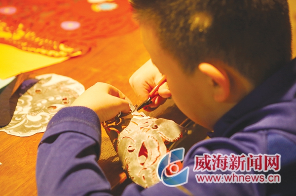 昨天上午,在环翠区孙家疃街道剪纸艺人张延茹的工作室里,十几位剪纸爱好者正在张延茹的指导下完成喜迎春节的剪纸作品。他们中有七八岁的孩童,也有五六十岁的退休人员,无论年龄大小,大家都安静又专注地认真剪着。一把把剪刀精巧地在红纸上游走,一个个栩栩如生的美丽图案在瞬间诞生。