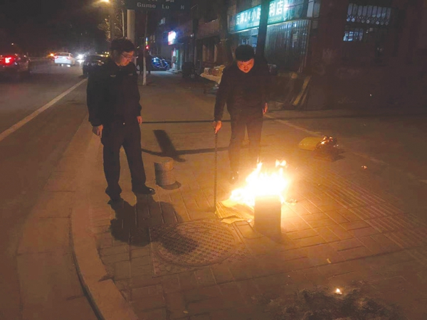 自1月28日(腊月二十三)至2月19日(正月十五),市城市管理执法监察支队还启动专项值班制度,每天晚上安排专人对市区范围内的抛撒、焚烧冥纸问题进行巡查,发现违规行为后及时制止、劝阻。对违规焚烧且不听劝阻的,将根据《威海市文明行为促进条例》依法查证并给予行政处罚。