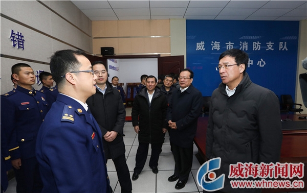 威海新闻网2月5日讯 昨天是农历大年三十。在这万家团圆喜迎佳节的美好时刻,仍有许多人为了千家万户的平安幸福忘我工作。当晚,市委书记王鲁明深入基层一线,代表市委、市政府分别慰问了坚守岗位的公安民警、消防指战员,充分肯定他们忠诚履职、无私奉献的精神,并向他们致以诚挚问候和新春祝福。市委常委、秘书长侯世超,副市长、市公安局局长叶立耘参加慰问。