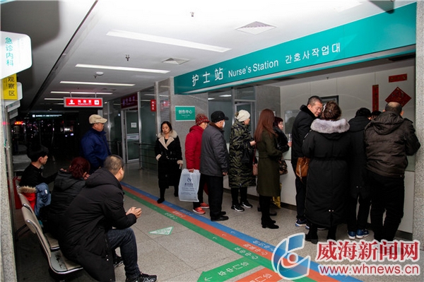 2月4日除夕夜,万家团圆,把酒言欢,在大家阖家团圆共叙天伦之夜的时候,总有一群人在默默地付出。在市立医院,那些以救死扶伤为天职的白衣天使,却为患者坚守在医院。是他们默默的坚守,谱出了万家团圆的平安曲;是他们默默的坚守,让大家迎来一个祥和、欢乐、平安的新春佳节。(Hi威海客户端记者 王茂忠文/图)