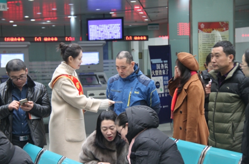 市公交公司工会组织干部职工在春运期间开展志愿服务活动,为乘客提供乘车线路咨询、维持乘车秩序、宣传文明乘车等志愿服务,方便市民出行。