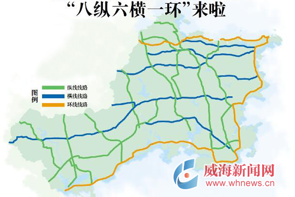 具体来说,八纵是S201威东线、S202威青线、S203蒲石线、S204初张线、S205上泽线、S206牟徐线、S207莱乳线、S208烟海线;六横是G206威汕线、G308文石线、S301成初线、S302成威线、S303俚李线、S305石泽线;一环是G228丹东线。