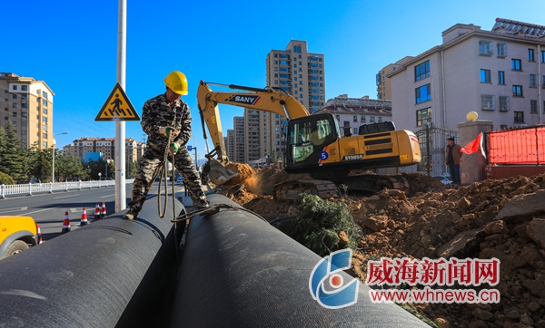 日前,海滨南路环岛改造前期迁改工作启动,水务集团工人正在进行管网改迁,预计4月底主体工程开工。