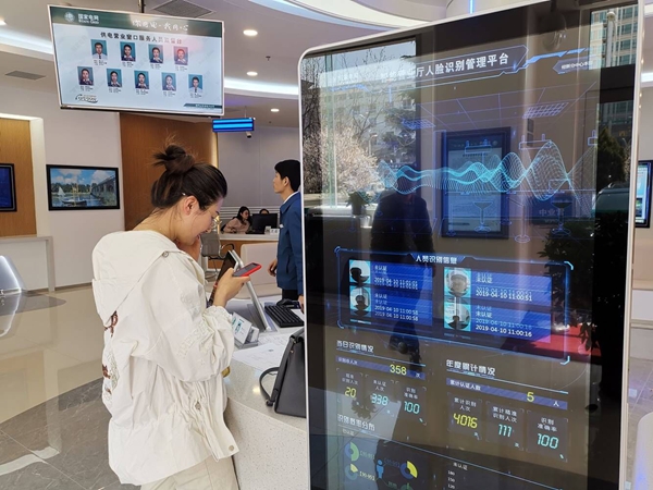 “阎先生在身份认证结束后进行的一整套缴费流程,就是我们‘零证办电’流程。”营业厅工作人员说。随后这名工作人员介绍了“零证办电”的整个流程:当市民进入营业厅时,营业厅上方的两台摄像头通过人脸检测,自动捕捉定位市民脸部照片,并予以识别,之后,将市民的信息上传到营业厅人脸识别管理平台的屏幕,并将信息推送至营业员手持的移动作业终端,以便营业员通过移动作业终端为市民提供精准服务。