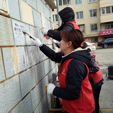 4月12日上午,经区新都花园社区组织20多名志愿者,开展“清理小广告 助力精致社区建设”活动,对辖区小广告进行集中清理。