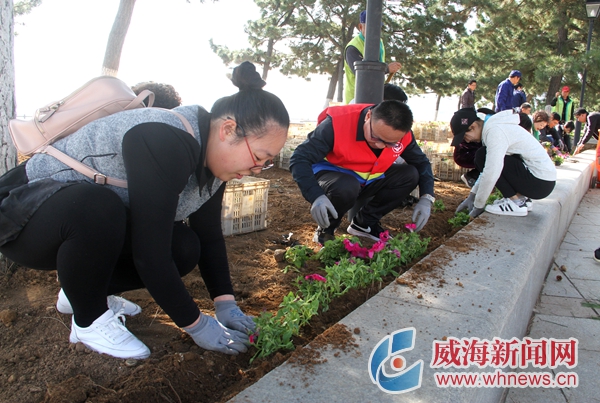 昨日,威海建设咨询服务业协会党委组织所属党支部,开展义务栽花活动,25名党支部书记在威海公园中心广场绿化区共栽种牵牛花等花卉11000余株。