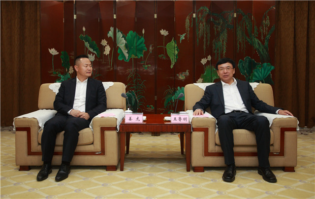 签约前,市委书记王鲁明会见歌尔集团副董事长姜龙一行。市领导侯世超、杨丽陪同会见。