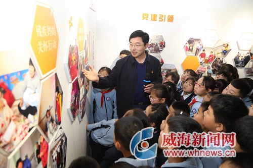 开展迷彩服义捐行动、推着残疾人游览刘公岛、圆盲人朋友的电商梦……看着墙上一张张公益照片,刘长城饶有兴致地给大家介绍大本营开展的公益活动,讲述残疾朋友的故事和现状。大家跟着“长城叔叔”的步子,凑上前仔细观看,认真聆听。“长城大本营的志愿者们帮助残疾人,帮助他们实现了轮椅上的画家梦、电商梦,我要向他们学习。”北竹岛小学学生说道。
