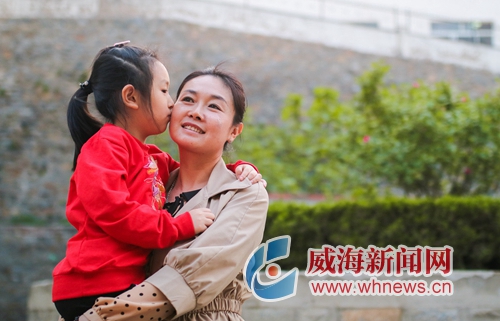 杨汶镁(左)在妈妈刘海红脸上深深一吻