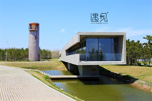 推开塔顶门的时候,好像打开了一个全新的世界,山风微微,远处的山岚盖着天空蓝,天鹅湖温柔而静谧,与荣成特色的海草房相得益彰。