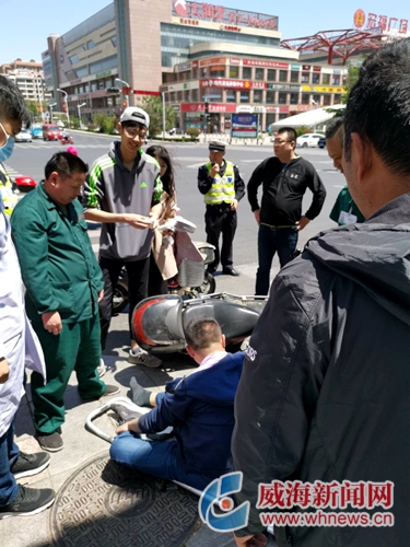 采访中,潘尹良一再说,整个过程,不是他一个人在施救,大家都在想法施救。像环卫工大叔、饿了么外卖小哥都上前帮忙,还有热心人帮忙找木棍,有的人在帮忙出主意,打120和110。“救人不是我一个人的功劳,威海人都是热心肠。”