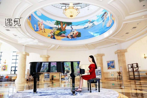 艺术中心旁边是音乐厅,厅内装饰富有欧洲传统风格,气势恢宏的金色大厅,色彩淡雅庄重,散发着华丽优雅的气质和浓郁的艺术气息。