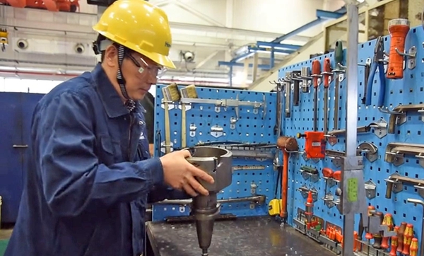 “进厂时安排我操作工作台直径达4米的CNC立式镗车中心,该镗车中心既有车的功能,还有钻、镗孔、铰孔、及攻丝等功能,面对这样一个功能齐全且国内最先进的大型镗车中心,我在技校所学的数控知识和实操经验根本应付不了。”李新占说,工作之初,就遇到这样一块难啃的硬骨头,但并没有把他吓倒。他通过查阅机床说明书熟悉代码指令,不断进行模拟演示;遇到加工技术问题,就向师傅请教;下班后,在宿舍学习数控刀具及使用参数等,这使得他在很短时间内便掌握了镗车中心的操作技巧,获得公司领导一致好评